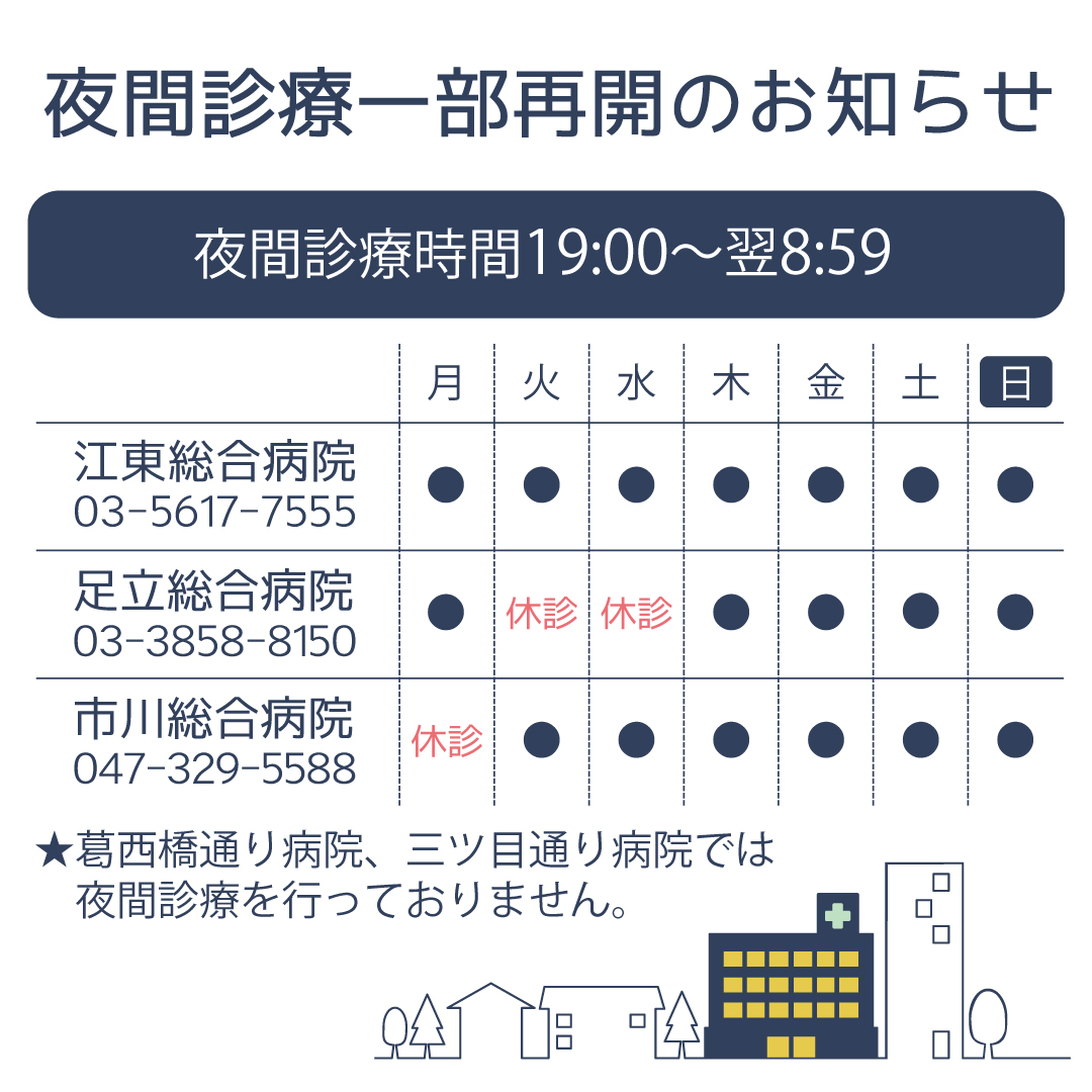 江東総合病院足立総合病院市川総合病院葛西橋通り病院三ツ目通り病院